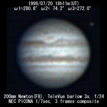 ![]() No. 4 1999/07/20 18:11:18(UT) I=280.8 II= 74.2 III=272.0 De= +3.3 E.Dia=39.83" |