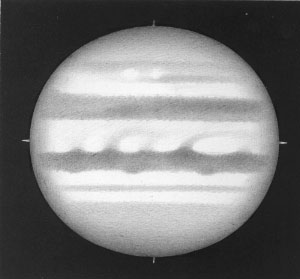 ![]() No. 5 1999/07/23 19h15m(UT) I= 73.9 II=204.0 III= 42.7 310mm Newton, x400 Seeing:7/10 Transp.:3/5 |
