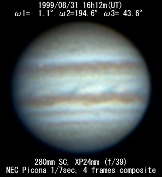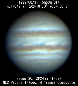 I=347.7 II=181.3 III= 30.3 280mm Schmidt-Cassegrain, XP24mm(f/39) NEC Picona 1/7sec, 4 frames composite Seeing:4/10 Transp.:2/5