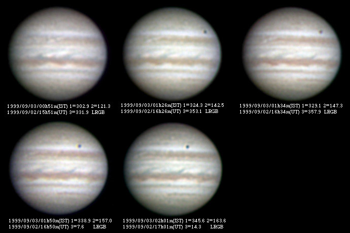 ![]() No. 75 1999/09/02 15:21:14(UT) I=286.1 II=104.7 III=314.2 De= +3.5 E.Dia=45.70" |