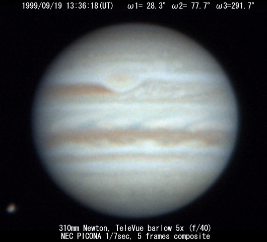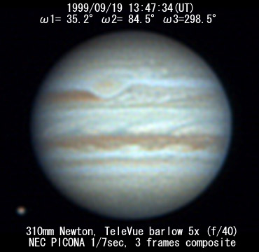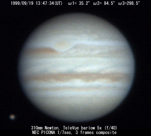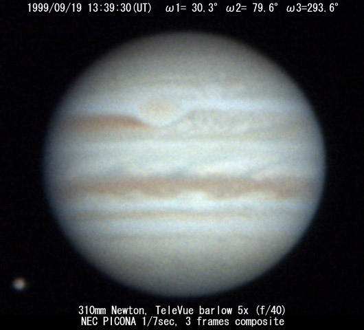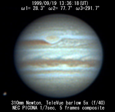 ![]() No. 93 1999/09/19 13:47:34(UT) I= 35.2 II= 84.5 III=298.5 De= +3.6 E.Dia=47.76" |