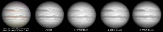 No.21 1999/09/28 15:04:42(UT) I= 64.5 II= 44.8 III=261.2, 5 frames composite No.22 1999/09/28 15:51:42(UT) I= 93.2 II= 73.2 III=289.6, 5 frames composite De= +3.6 E.Dia=48.54"