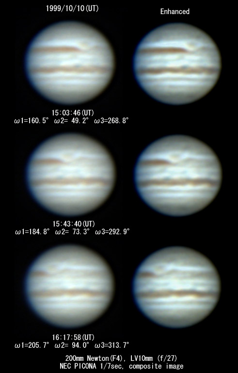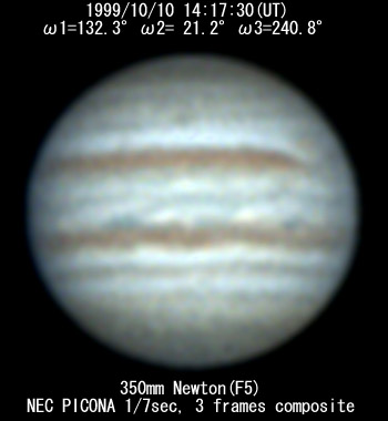 ![]() No. 16 1999/10/10 15h54m(UT) I=191.1 II= 79.6 III=299.2 composite image |
