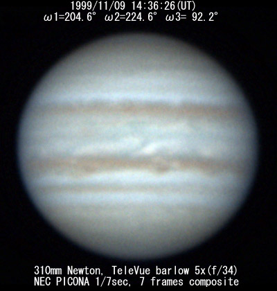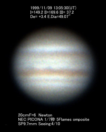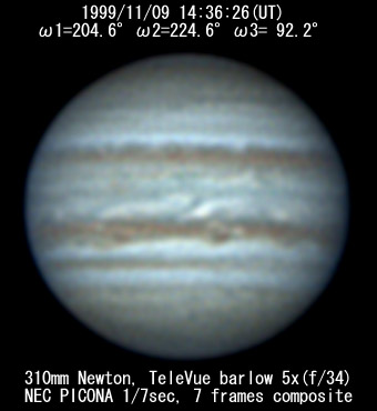 ![]() 1999/11/08 13h18m(UT) I=155.5 II=175.8 III= 44.5