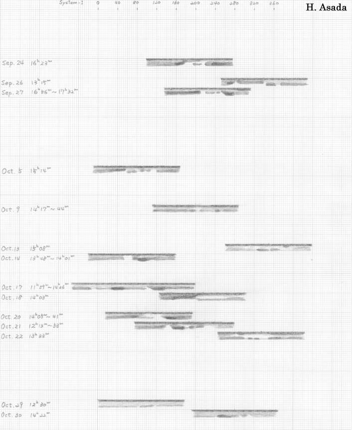 暗斑1,暗斑2の隙間に白斑を見たのは9/18の1回だけである。 暗斑1および暗斑2の終点は見る度に異なるイメージでわかり辛い。