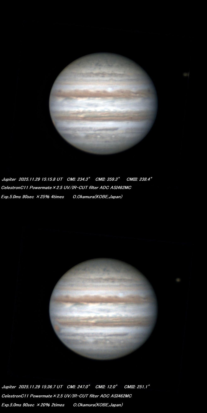 前回報告の11月4日以降、何度か木星の撮像を試みているのですが、準備を整え撮像を始めるとなぜか天候が急変し断念に追い込まれております。