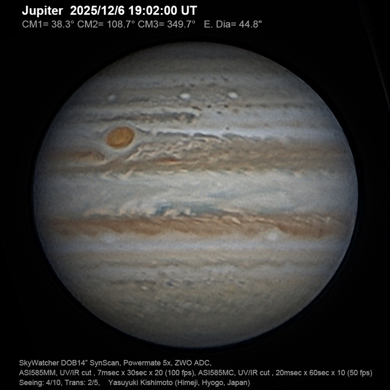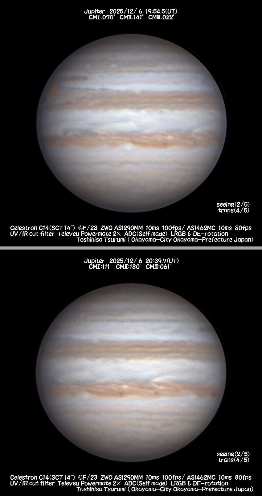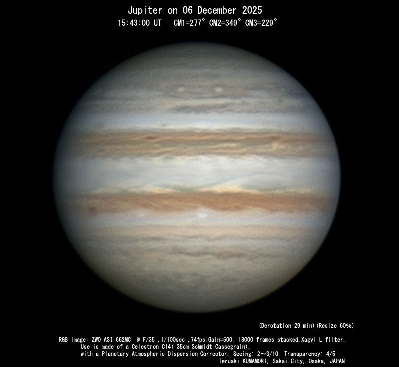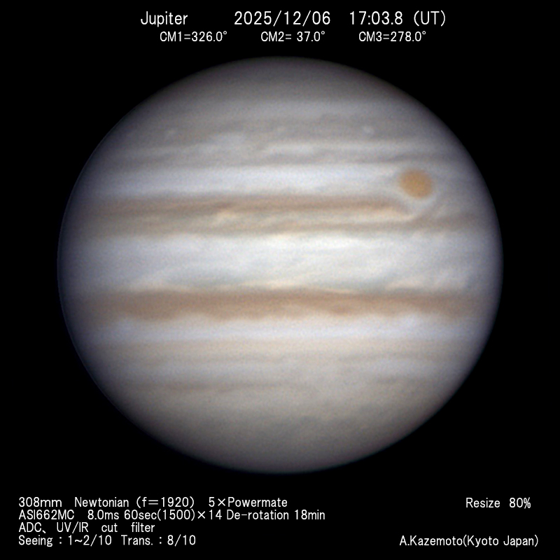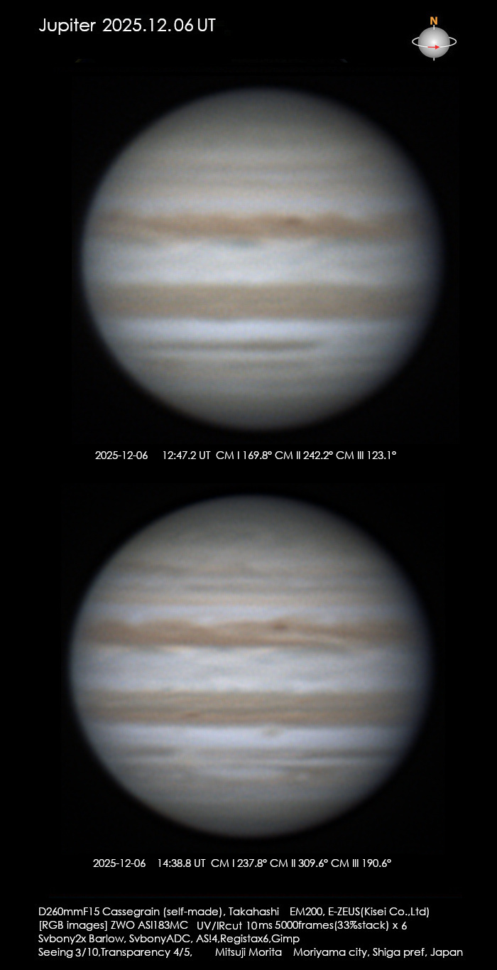 NEBが細くなっています。バージは完全に北縁の模様になり、白斑はNTrZに出て北縁の凹みがなくなってきました。