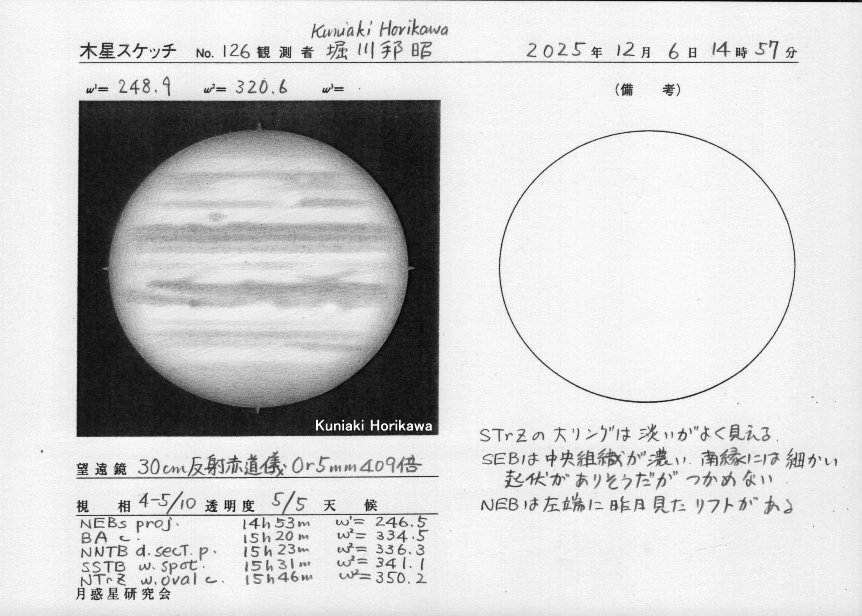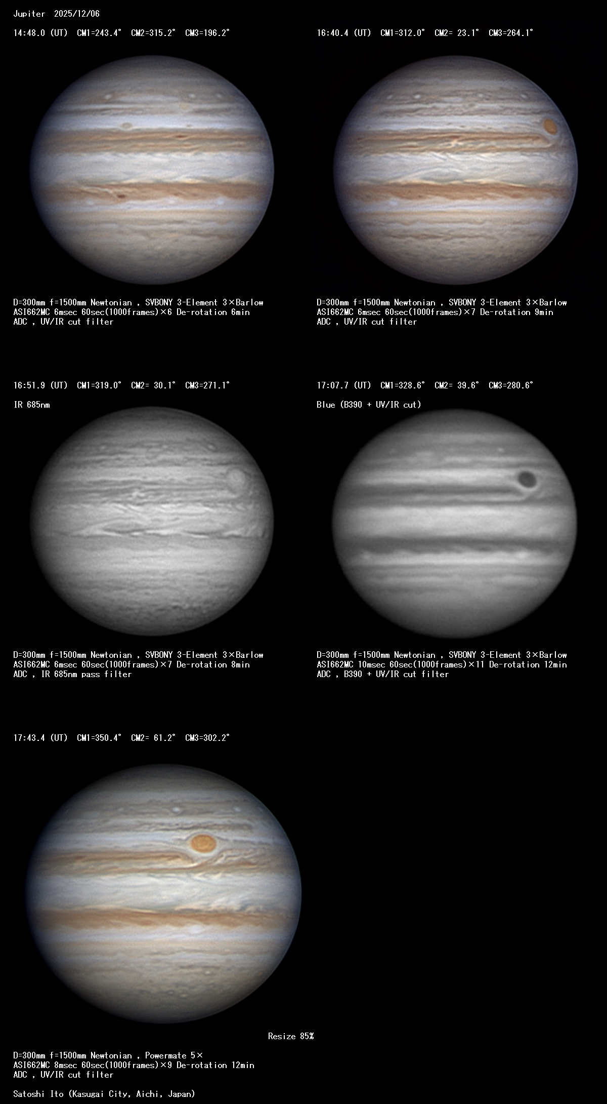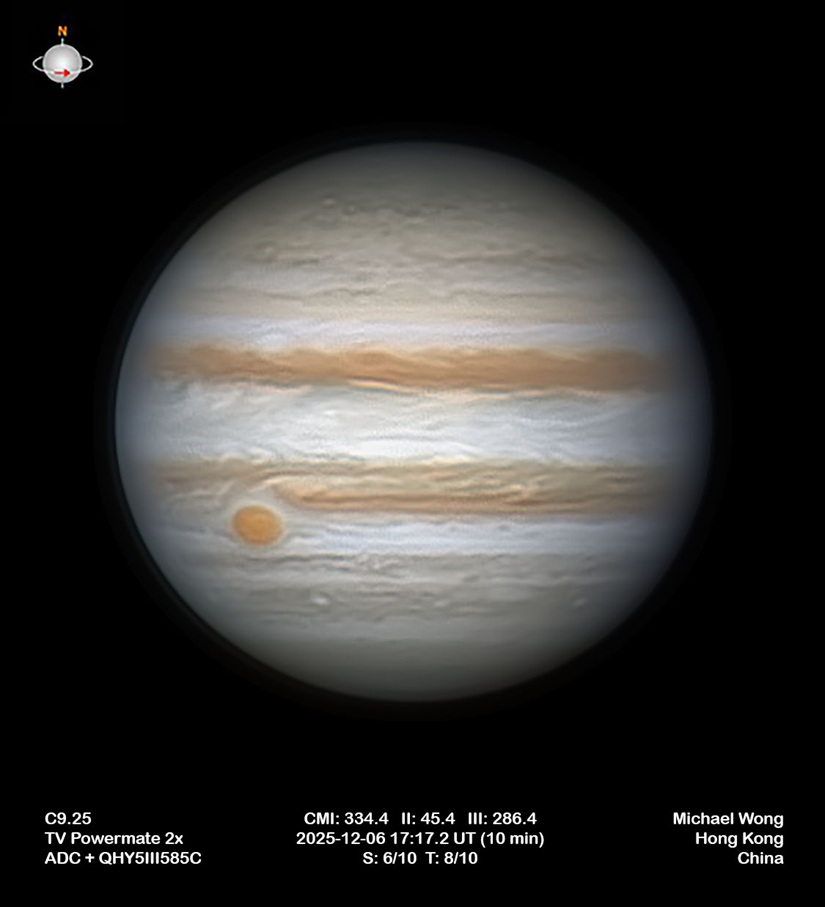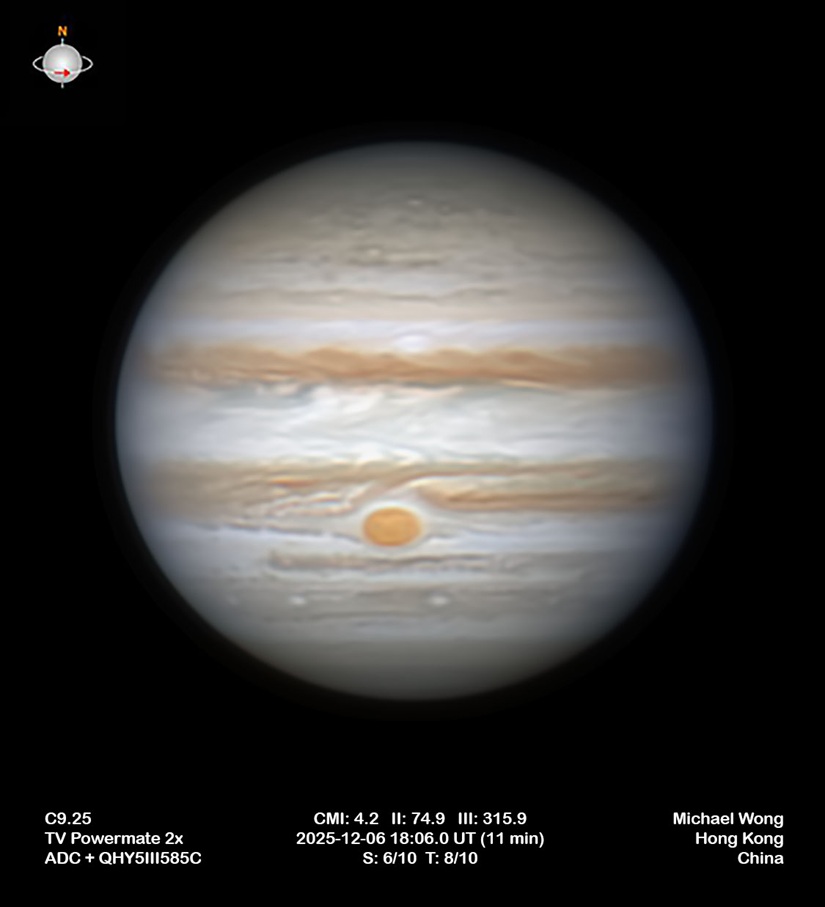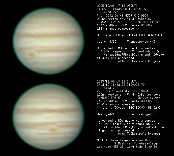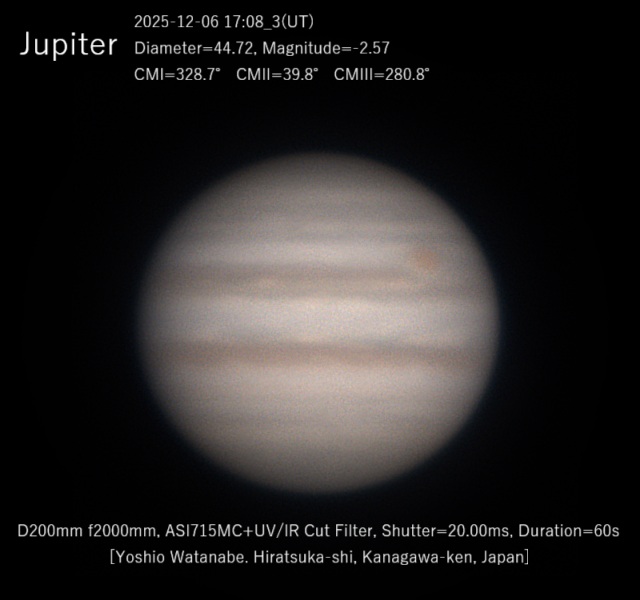 NEBが細くなっています。バージは完全に北縁の模様になり、白斑はNTrZに出て北縁の凹みがなくなってきました。