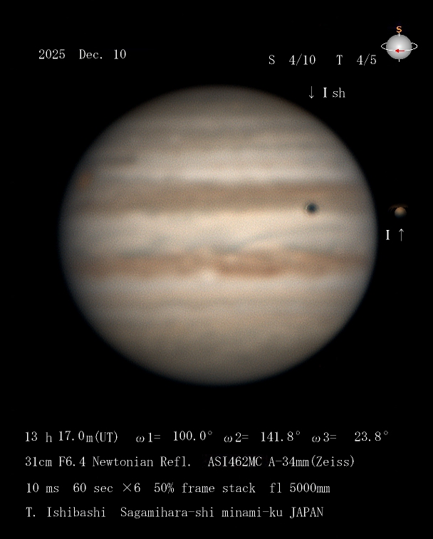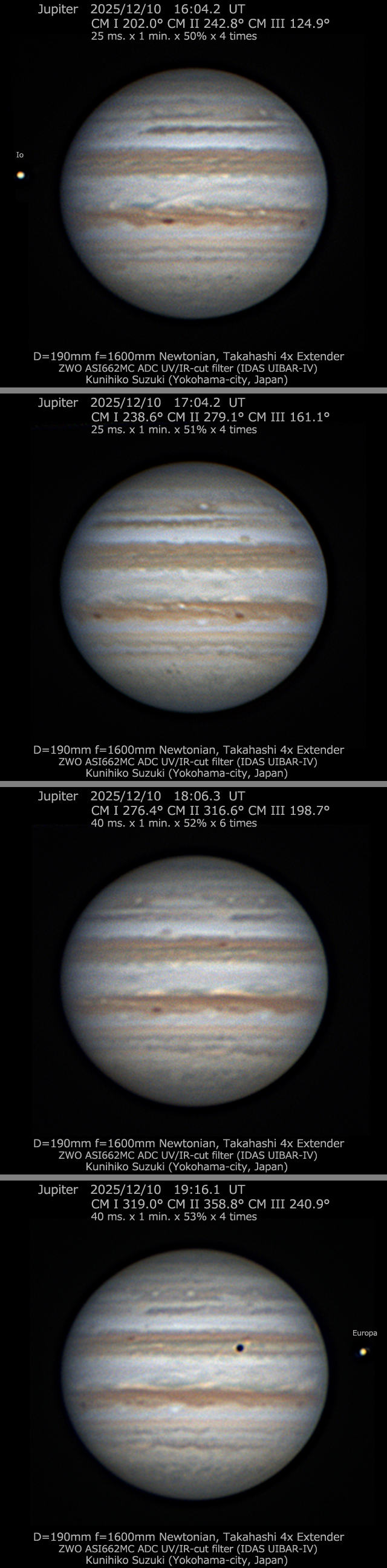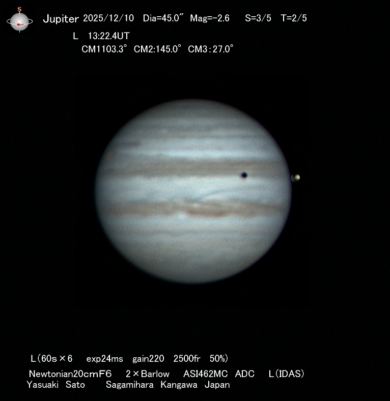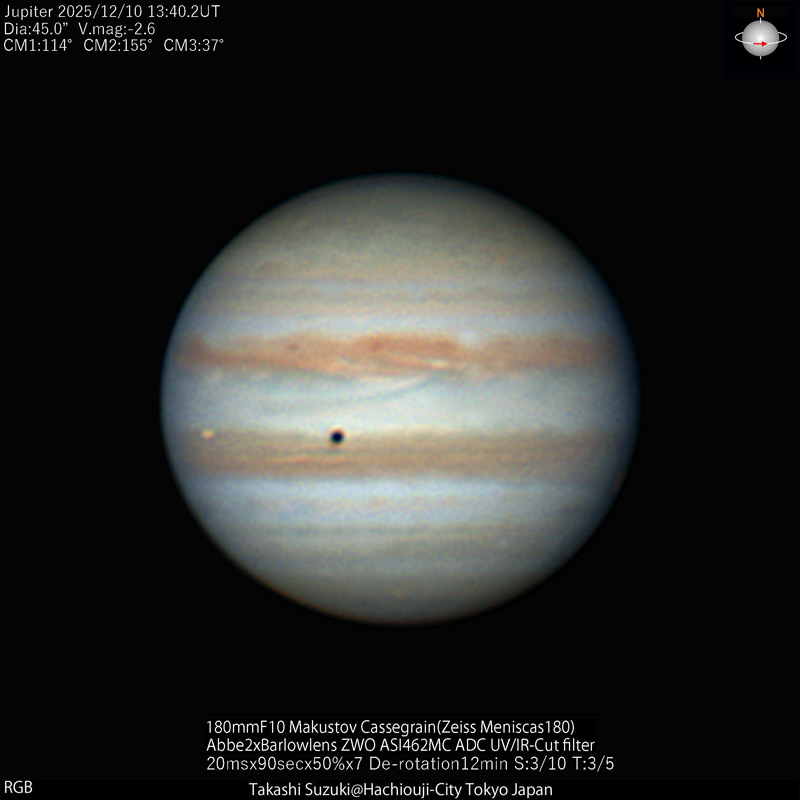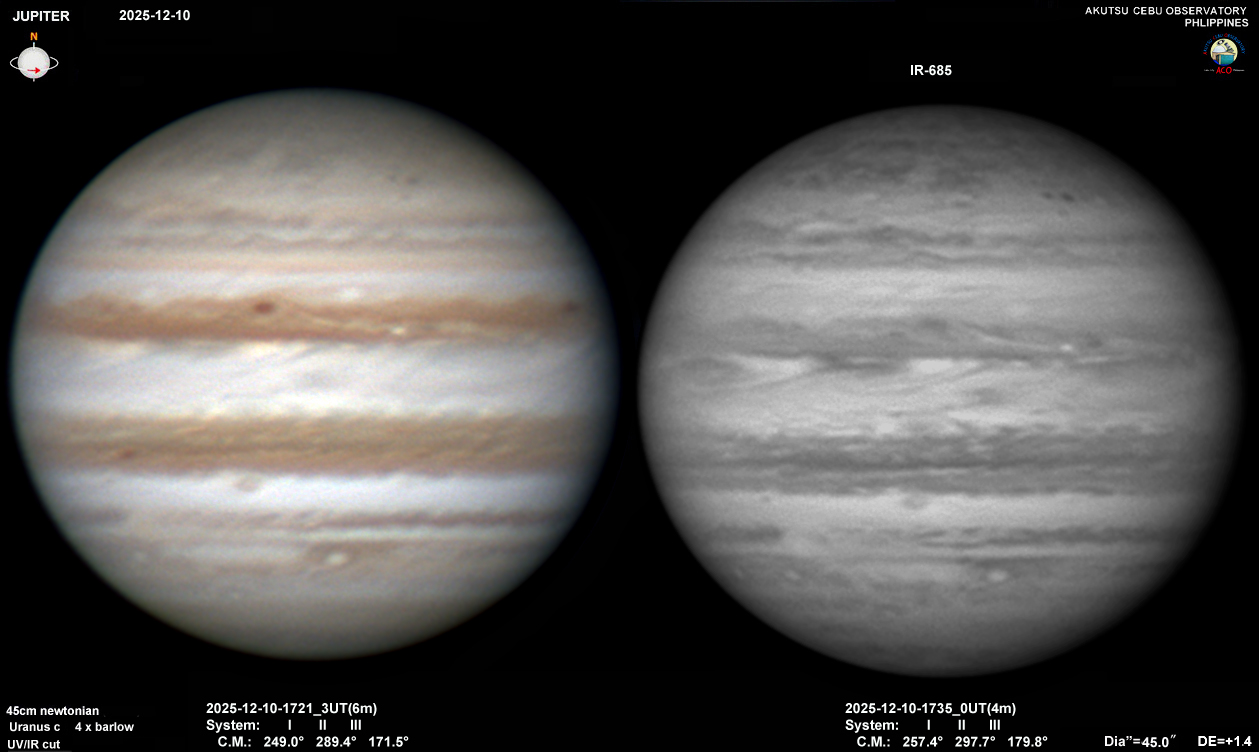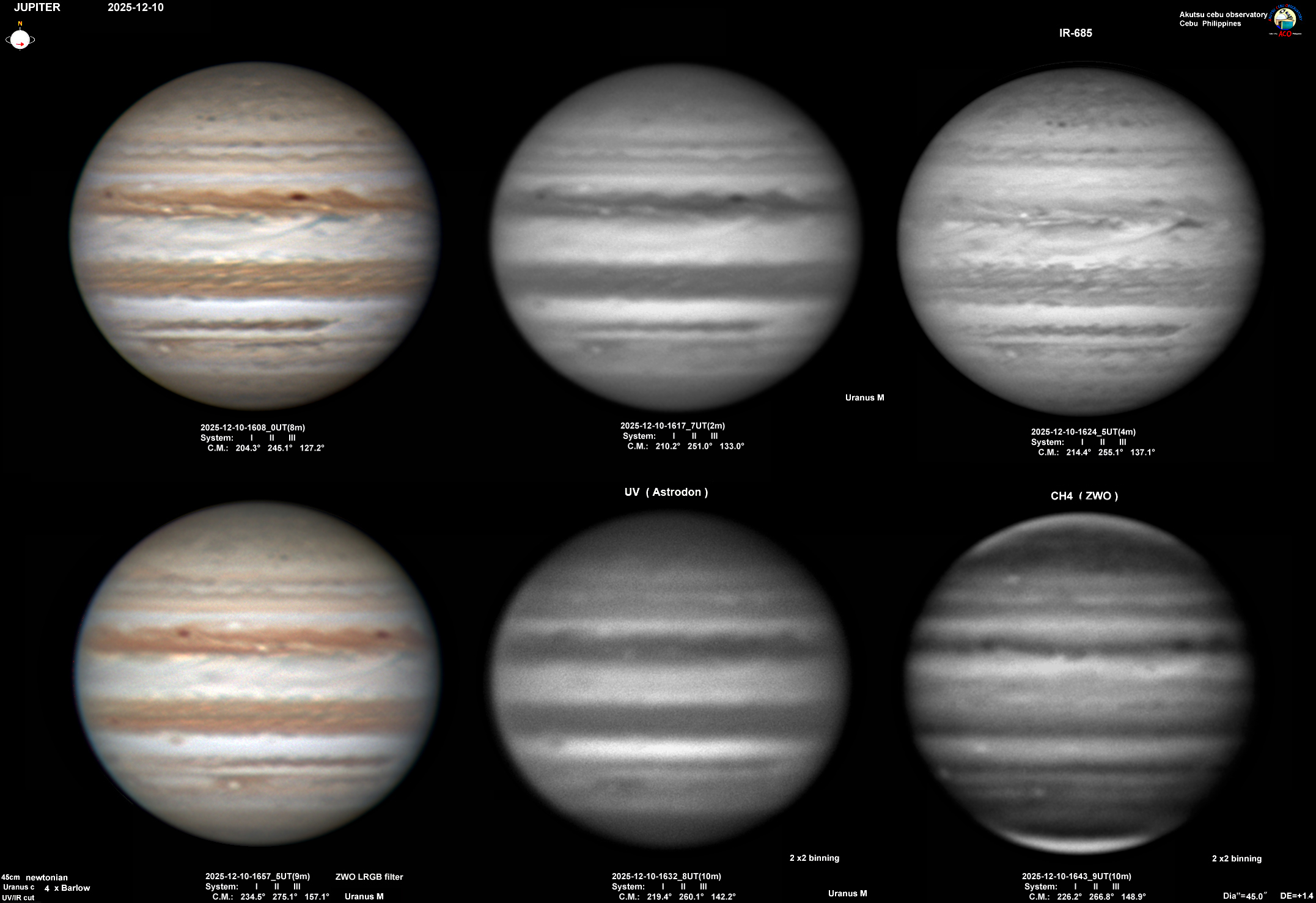 木星のNEBはカラーでは幅はある濃い模様ですがCH4画像では北側(上)が少し淡い(上空に高い雲)。