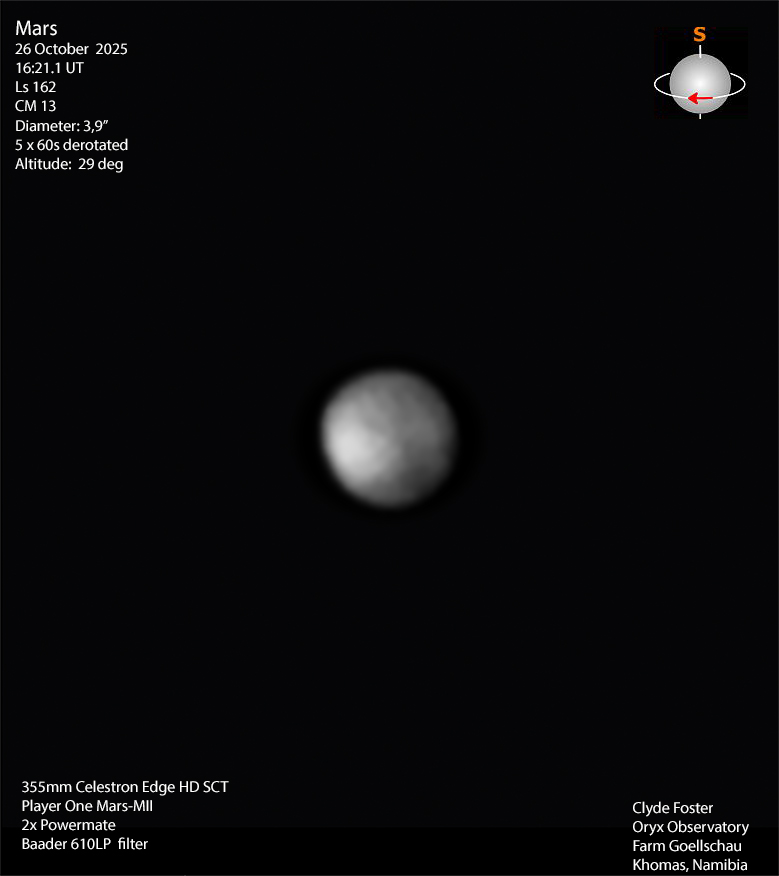 I fear the persistent seasonal afternoon winds, which are peaking just around the time I am wanting to image Mars, will draw this apparition to a close for me. Almost impossible to attain a decent focus, and stronger winds are forecast in the coming days. But I will continue to check.
