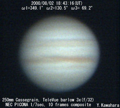I=109.4 II=227.9 III=167.4 280mm Schmidt-Cassegrain, XP24mm(f/32) NEC Picona 1/7sec, 5 frames composite Seeing:6/10 Transp.:4/5