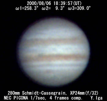 I=285.9 II= 36.7 III=336.4 280mm Schmidt-Cassegrain, XP24mm(f/32) NEC Picona 1/7sec, 6 frames composite Seeing:5/10 Transp.:3/5