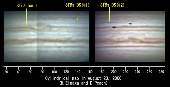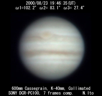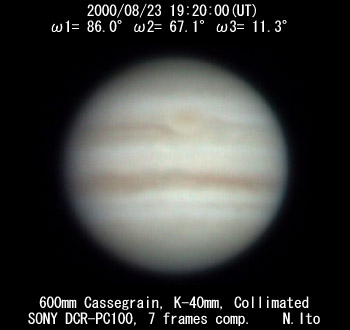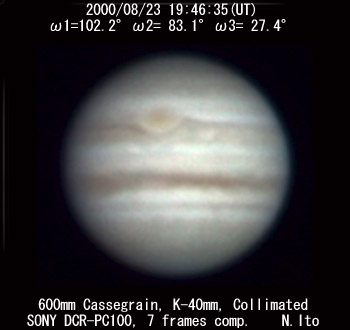 ![]() No. 49 2000/08/23 18:59:44(UT) I= 73.7 II= 54.8 III=359.1 | ![]() (Enhanced by Y.Iga)