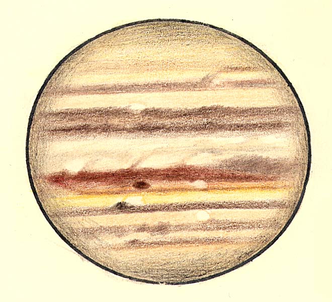 - 上のスケッチのカラー版。色鉛筆にて31cmの見え方を再現した。うまく色調を再現できた。