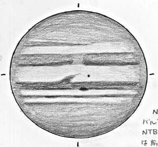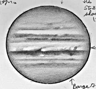 大赤斑はほんのり赤味を感じるが、輪郭はつかめない。