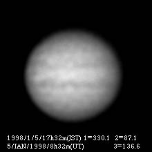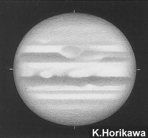 大赤斑はわずかに赤味を感じる。左下がやや見にくく南が濃い。