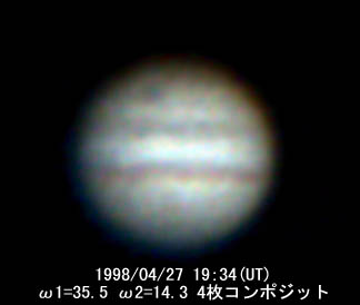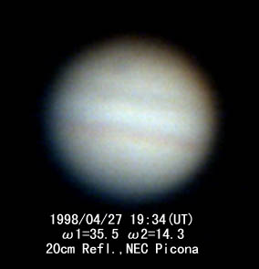 ![]() 1998/04/27 19:25(UT) I= 29.5 II= 8.4 |