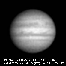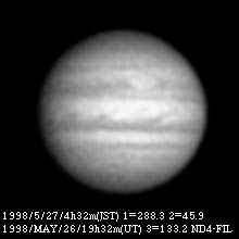 ![]() No.12 1998/05/26 18:43(UT) I=260.1 II= 18.0 Seeing:3/10 Transp.:2/5 x311 |