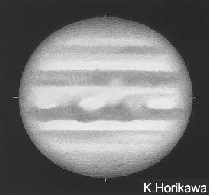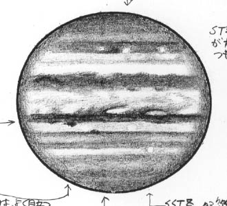 ![]() No.14 1998/05/27 18:43(UT) I= 58.2 II=168.4 Seeing:7/10 Transp.:5/5 x360 |