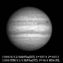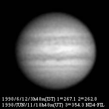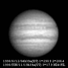 ![]() No.15 1998/06/11 18:50(UT) I=270.0 II=265.8 Seeing:8/10 Transp.:5/5 x311 |
