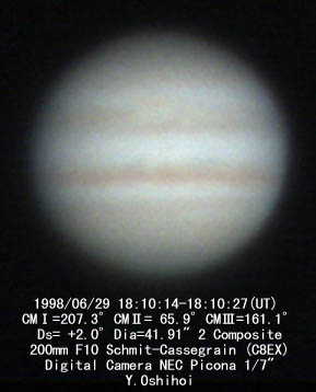 No.11 1998/06/29 19:02(UT) I=239.7 II= 97.8 Seeing:6-7/10 Transp.:5-6/10