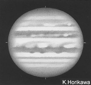 ![]() No.19 1998/07/03 15:49(UT) I= 33.7 II=222.4 Seeing:5/10 Transp.:2-3/5 x200 |