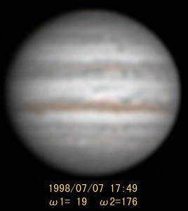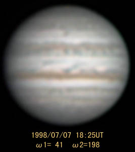 ![]() No.25 1998/07/07 16:00(UT) I=312.1 II=110.3 Seeing:2/10 Transp.:3/5 x360 |