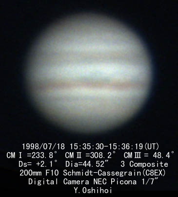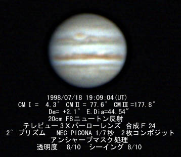![]() No.29 1998/07/18 17:40(UT) I=310.5 II= 24.2 Seeing:7/10 Transp.:4/5 x360 |