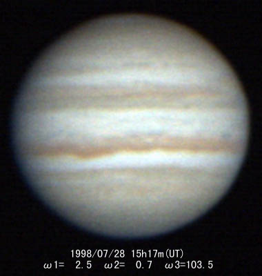 ![]() No.16 1998/07/28 14:14(UT) I=324.7 II=323.1 Seeing:5-6/10 Transp.:6-7/10 |
