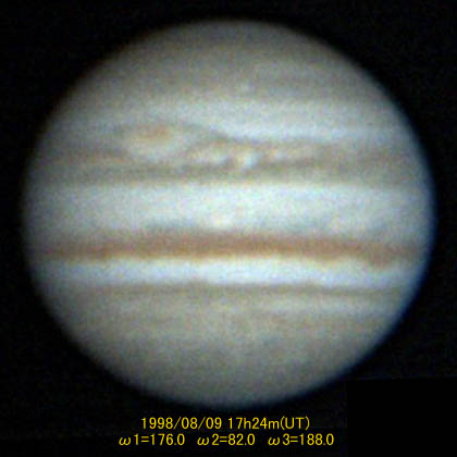 ![]() No.55 1998/08/09 16:06(UT) I=128.9 II= 35.2 Seeing:7/10 Transp.:4/5 x360 |