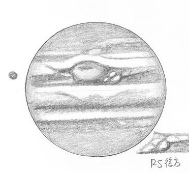 ![]() No.35 1998/08/12 13h46m(UT) I=157.7 II= 41.8 Seeing:4/10 Transp.:1-3/5 x200 |
