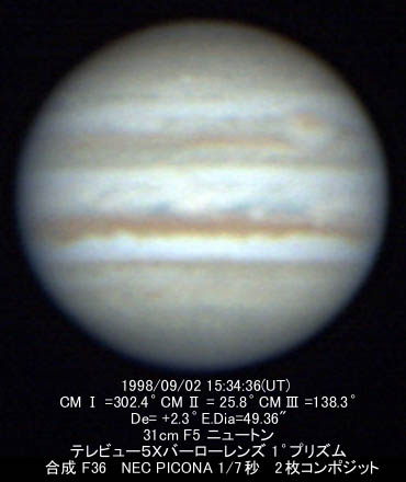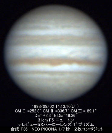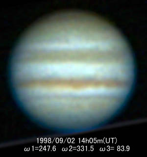 ![]() No.43 1998/09/02 14:05(UT) I=247.6 II=331.5 Seeing:2-3/10 Transp.:2/5 LV15mm |