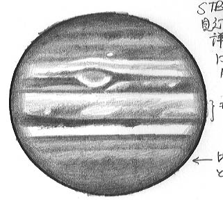 ![]() No.71 1998/09/03 14:36(UT) I= 64.8 II=140.8 Seeing:7/10 Transp.:5/5 x390 |