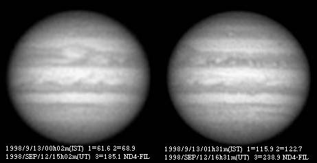 ![]() Image#58 1998/09/12 15:02(UT) I= 61.6 II= 68.9 Image#59 1998/09/12 16:31(UT) I=115.9 II=122.7 | |