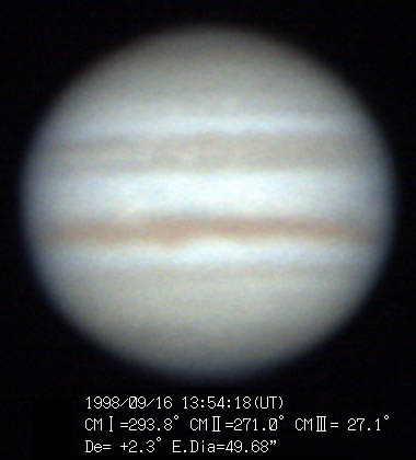 ![]() No.62 1998/09/16 15h47m(UT) ω1= 2.5 ω2=339.0 Seeing:4/10 Transp.:5/5 x200 |