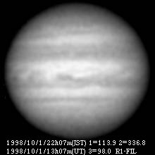![]() No.87 1998/10/01 11:42(UT) I= 63.3 II=286.7 Seeing:4/10 Transp.:4/5 x390 |