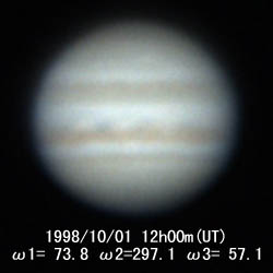 ![]() No.86 1998/10/01 10:50(UT) I= 31.6 II=255.2 Seeing:4/10 Transp.:4/5 x390 |