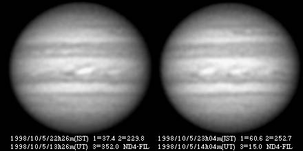 ![]() Image#67 1998/10/05 13:26(UT) I= 37.4 II=229.8 Image#68 1998/10/05 14:04(UT) I= 60.6 II=252.7 | |