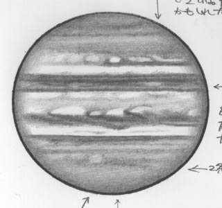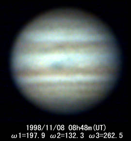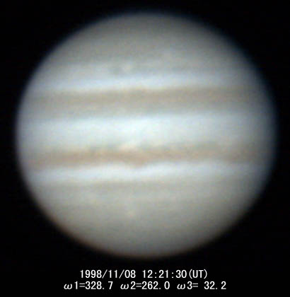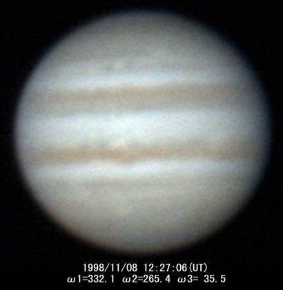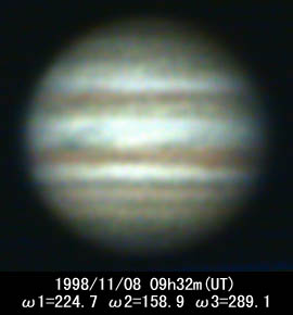 ![]() No.71 1998/11/08 09:32(UT) I=224.7 II=158.9 Seeing:3/10 Transp.:4/5 LV15mm 1 image |