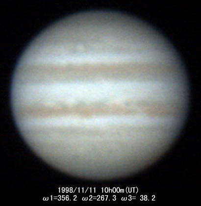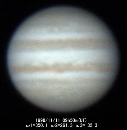 ![]() No.105 1998/11/11 11h14m(UT) I= 40.7 II=311.5 Seeing:6/10 Transp.:4/5 x390 |