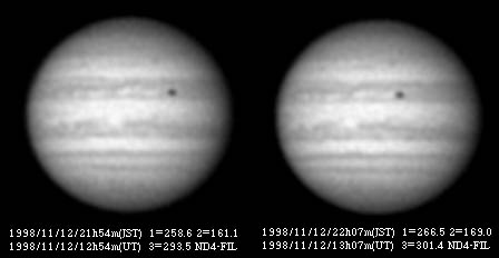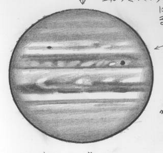 ![]() No.109 1998/11/12 12h10m(UT) I=232.7 II=135.4 Seeing:3/10 Transp.:5/5 x390 |