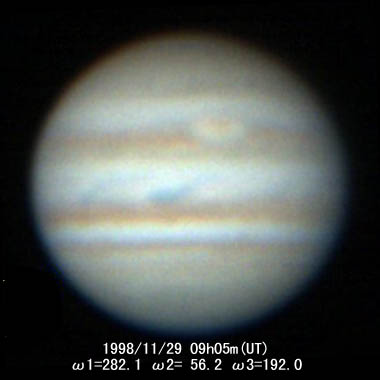 ![]() No.123 1998/11/29 09h23m (UT) ω1=293.3 ω2= 67.5 Seeing:5(2)/10 Transp.5/5 ×390 |