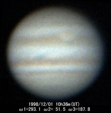 ![]() No.103 1998/12/01 10h59m(UT) ω1=307.4 ω2= 65.6 Seeing:3-4/10 Transp.:2-3/5 x200 |