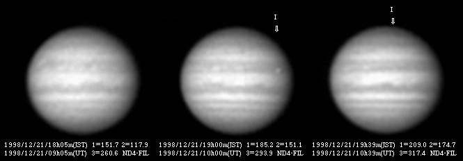 ![]() Image#104 1998/12/21 09:05(UT) I=151.7 II=117.9 Image#105 1998/12/21 10:28(UT) I=185.2 II=151.1 Image#106 1998/12/21 10:28(UT) I=209.0 II=174.7 | |