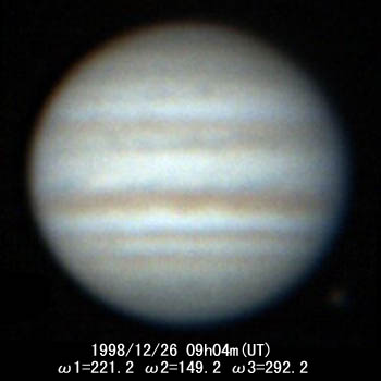![]() No.110 1998/12/26 08h51m(UT) ω1=212.4 ω2=140.6 Seeing:5/10 Transp.:4/5 x200 |