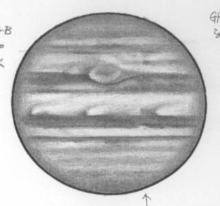 ![]() 極端な画像処理を適用(伊賀) 大赤斑の右上が淡くなったようだ。 |