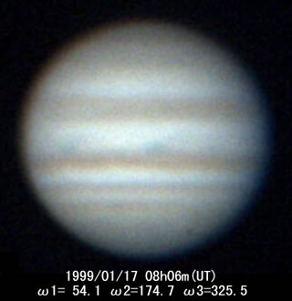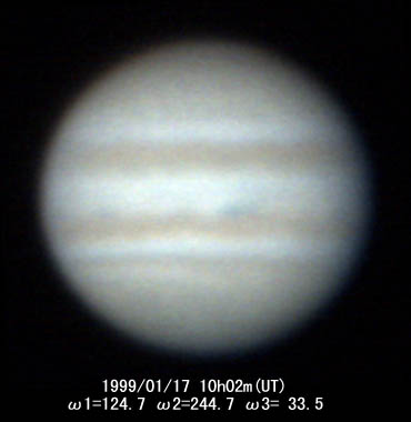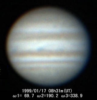 ![]() No.114 1999/01/17 09h06m(UT) ω1= 90.5 ω2=210.7 Seeing:4-5/10 Transp.:3/5 x200 |