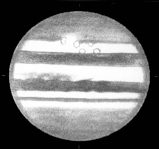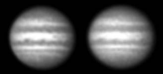 ![]() No.76 1999/01/17 09h07m(UT) I= 90.8 II=211.0 III=359.8 Seeing:2/10 Transp.:4/5 LV15mm 2 images composite |