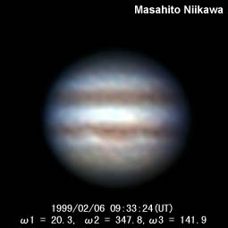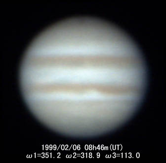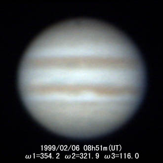 ![]() No.116 1999/02/06 08h57m(UT) ω1=357.9 ω2=325.7 Seeing:4-5/10 Transp.:5/5 x200 |