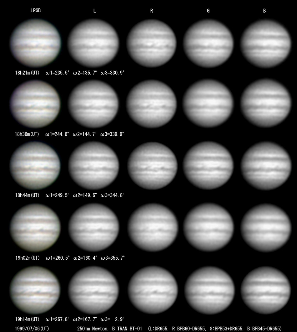 ![]() No. 6 1999/07/06 19:33:36-19:33:48(UT) I=281.1 II=180.9 III= 15.0 210mm Newton(F5) NEC Picona 1/7sec |